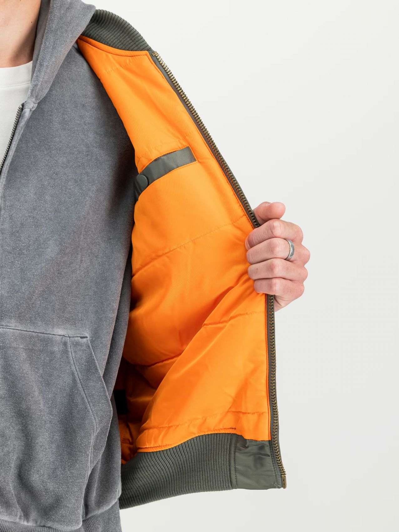 La bomber jacket MA-1 VF 59 si distingue per i suoi dettagli ben studiati: l'etichetta a bandiera sul braccio sinistro aggiunge un tocco di originalità al design generale mentre il tag RBF e la tasca utility sulla manica conferiscono alla giacca uno stile militare autentico.