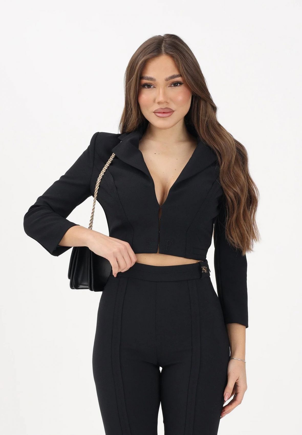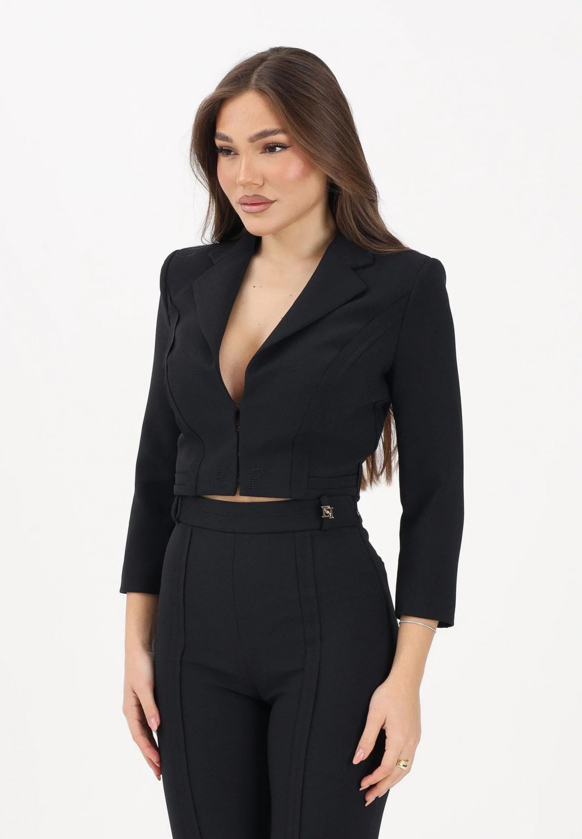 How to choose the sizeElisabetta Franchi is soul, it is an emotion on the skin wrapped in a veil of eternal beauty! The brand was born from the designer's passion and her tenacity in pursuing her dream. For her, fashion has always been the world in which to feel at home and for which her interpretative key is characterized by elegant and at the same time subversive feminine garments, because the Elisabetta Franchi woman is not fragility, she is stubbornness and strength that makes room constantly in an urban jungle, cleaving those who hinder it with style and sophistication. That warrior child has reached the top of the ladder to success: the springboard was Betty Blue in 1998 in which she made the first garments for the Celyn B. collection in which she echoed Parisian elegance. Her decisive turning point was in 2012 when she decided to sign her creations by sealing and thus giving life to an immortal brand. Iconic elements of the Elisabetta Franchi style are the fabrics, in which the use of pleats is frequent to enhance the volumes and double crepe for the prêt-à-porter dresses, the sinuous lines, with a classic base but with singular details such as the trousers cropped with gold embroidery or fringes, finally the use of soft tones, never excessive, which are a breath of innovation with each new collection. Each new collection is always awaited with great interest and great expectation, and each collection always manages to live up to its designer.