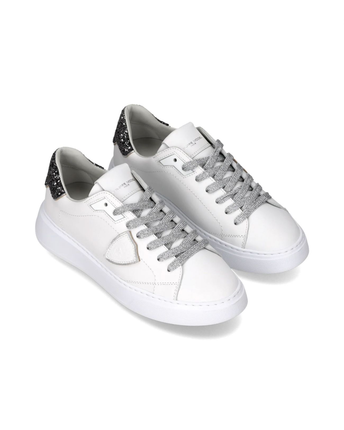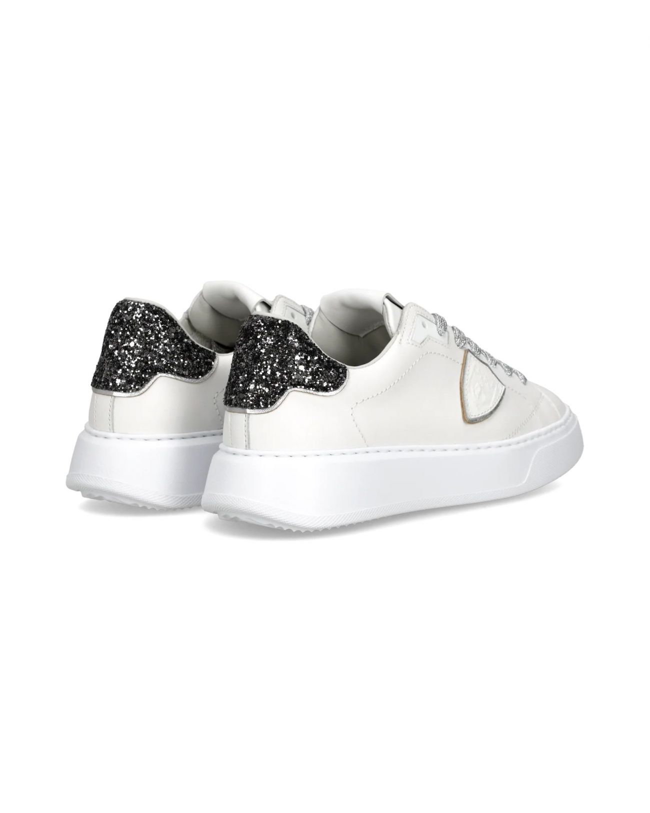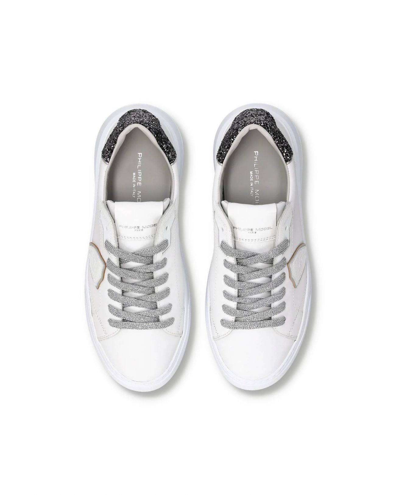 Eleva il tuo stile con le nuove sneaker Temple: forme essenziali ispirate ai modelli nineties rivisitate con creatività e materiali italiani. La tomaia in morbido vitello bianca è completata da spoiler glitterato che riprende il sottoscudo ed i lacci. La suola è in gomma ultraleggera. Materiali: Sneaker in vitello con spoiler glitterato. Sottopiede in memory con costruzione estraibile, fodera interna in pelle spugna di cotone. Suola in gomma ultra leggera con altezza al tallone. Composizione: 85% CALF LEATHER - 10% GOAT LEATHER - 5% TEXTILE Suola: 4 CM