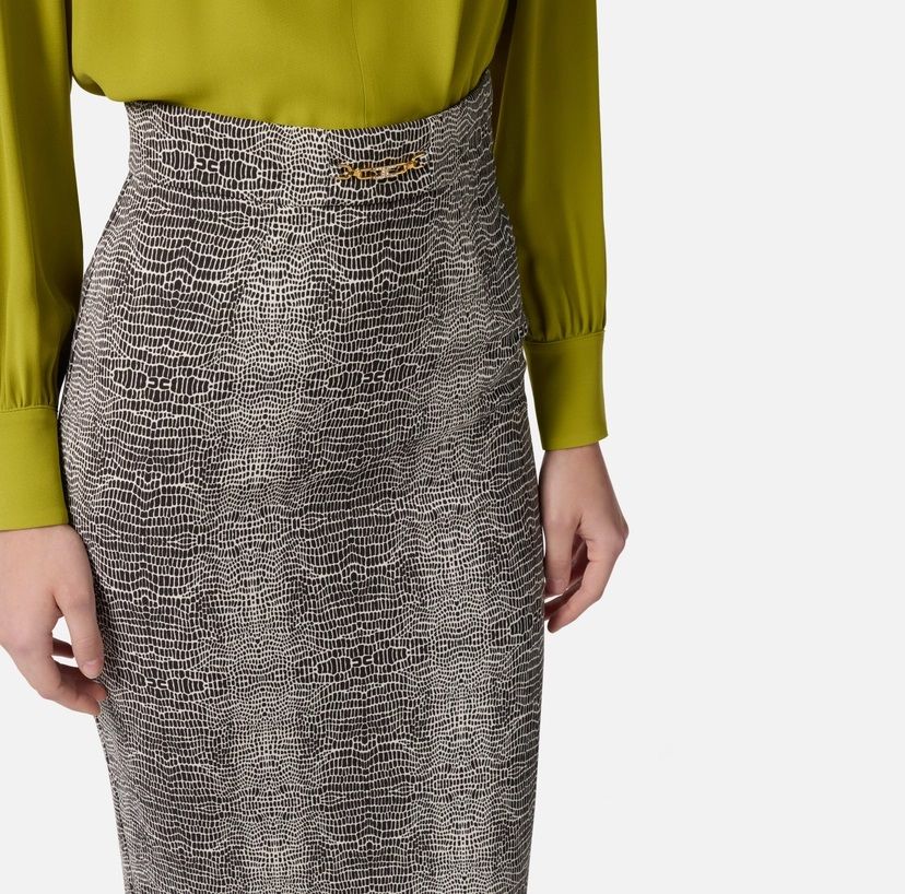 Caratteristica: Gonna MidiElisabetta Franchi è anima, è un'emozione a fior di pelle avvolta da un velo di bellezza eterna! Il brand è nato dalla passione della designer e dalla tenacia nell'inseguire il suo sogno. La moda per lei è sempre stata il mondo in cui sentirsi a casa e per la quale la sua chiave interpretativa è caratterizzata da capi femminili eleganti e al contempo sovversivi, perché la donna Elisabetta Franchi non è fragililità, è caparbietà e forza che si fa spazio costantemente in una giungla urbana fendendo chi la ostacola a colpi di stile e raffinatezza. Quella bambina guerriera ha raggiunto la vetta della scalata al successo: trampolino di lancio fu la Betty Blue nel 1998 in cui realizza i primi capi per la collezione Celyn B. in cui echeggiava l'eleganza parigina. La svolta decisiva fu nel 2012 in decise di firmare le sue creazioni sigillando e dando vita così ad un marchio immortale. Elementi iconici dello stile Elisabetta Franchi sono i tessuti, in cui frequente è l'uso del plissé per esaltare i volumi e del doppio crêpe per gli abiti prêt-à-porter, le linee sinuose, con base classica ma con dettagli singolari come i pantaloni cropped con ricamo in oro o frange, infine l'uso di toni tenui, mai eccessivi, che sono una ventata di innovazione ad ogni nuova collezione. Ogni nuova collezione è attesa sempre con grande interesse e grande aspettativa, ed ogni collezione riesce sempre ad essere all'altezza della sua designer.