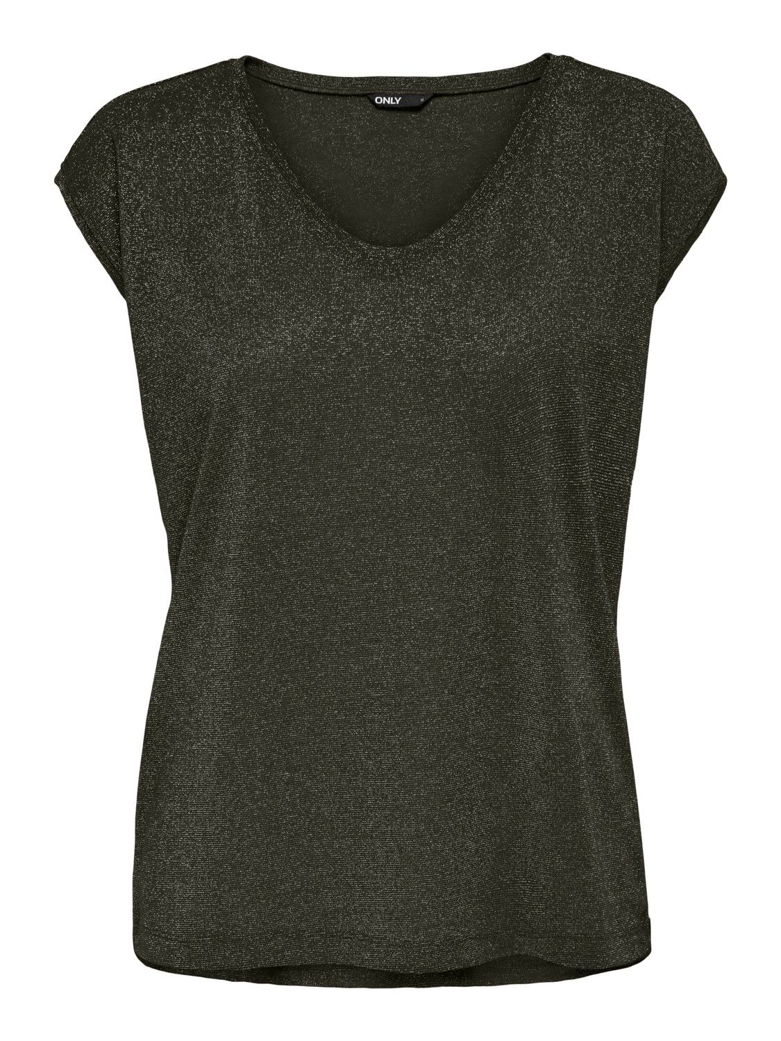 DESCRIZIONE DEL PRODOTTO - Maglietta a manica corta - Scollo a V - 45% Poliestere, 33% Fibre metalliche, 22% Viscosa - Lavare in lavatrice a massimo 40 °C con programma per capi delicati - Non candeggiare - Non asciugare in asciugatrice - Ferro da stiro a temperature basse. Massima temperatura 100 °C